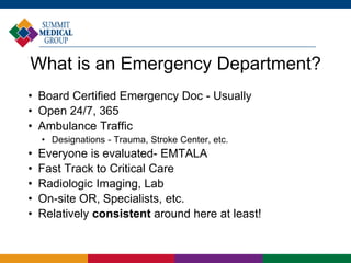 . Marque Urgent Care is the perfect alternative for most non-emergency situations. Urgent Care Center at Summit Medical Group. Because hospital emergency rooms can often be crowded Urgent Care services provide an easier way to get care if your condition is not life-threatening.